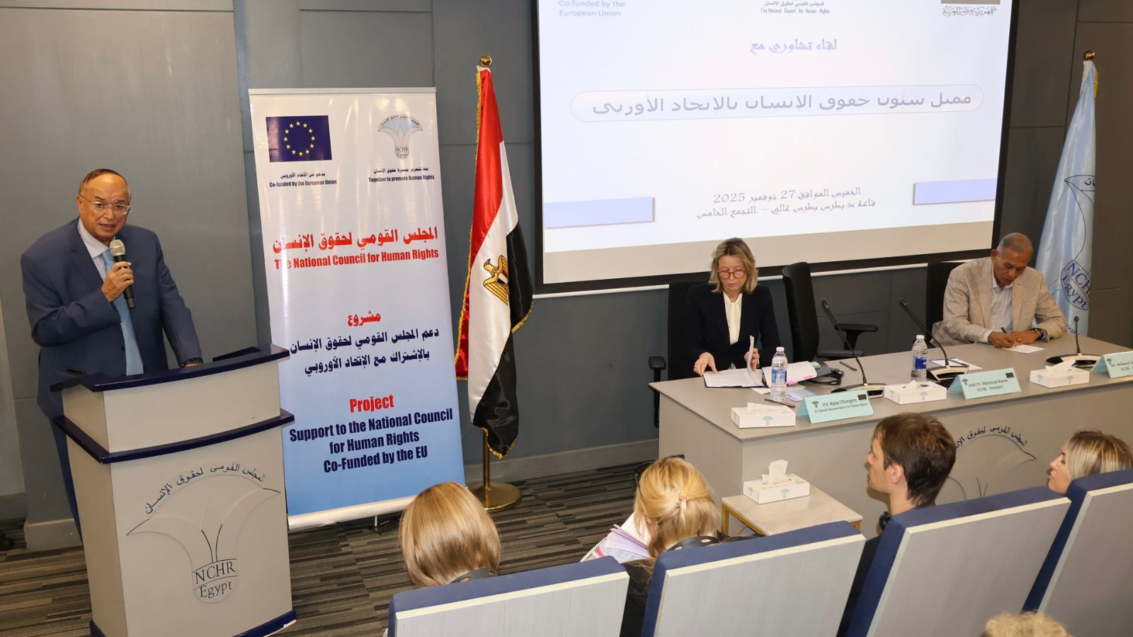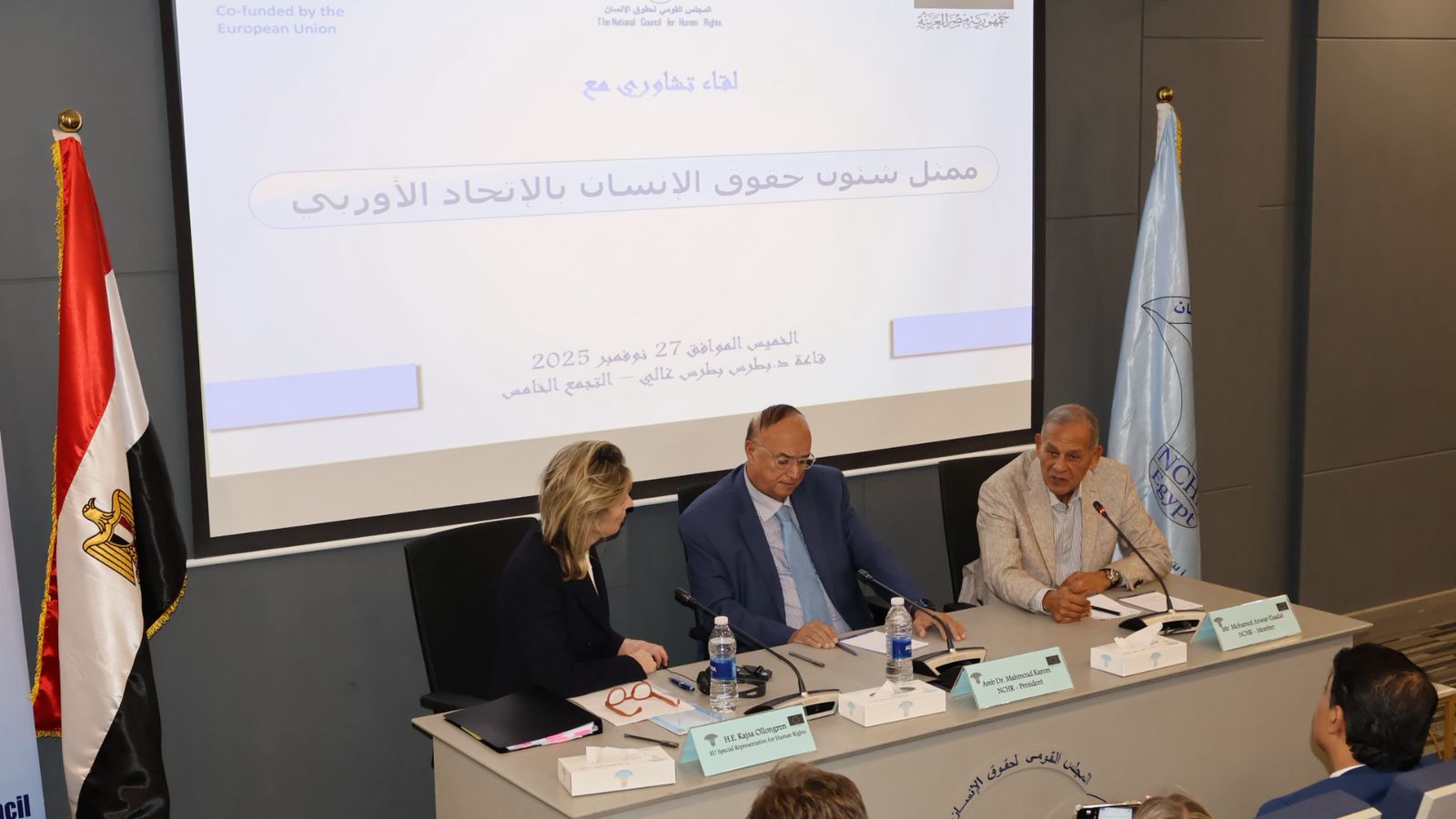 وخلال اللقاء رحّب رئيس المجلس بزيارة المسؤولة الأوروبية، مؤكدًا أهمية الشراكة الممتدة بين المجلس والاتحاد الأوروبي في دعم حقوق الإنسان وبناء القدرات وتعزيز التعاون مع منظمات المجتمع المدني.