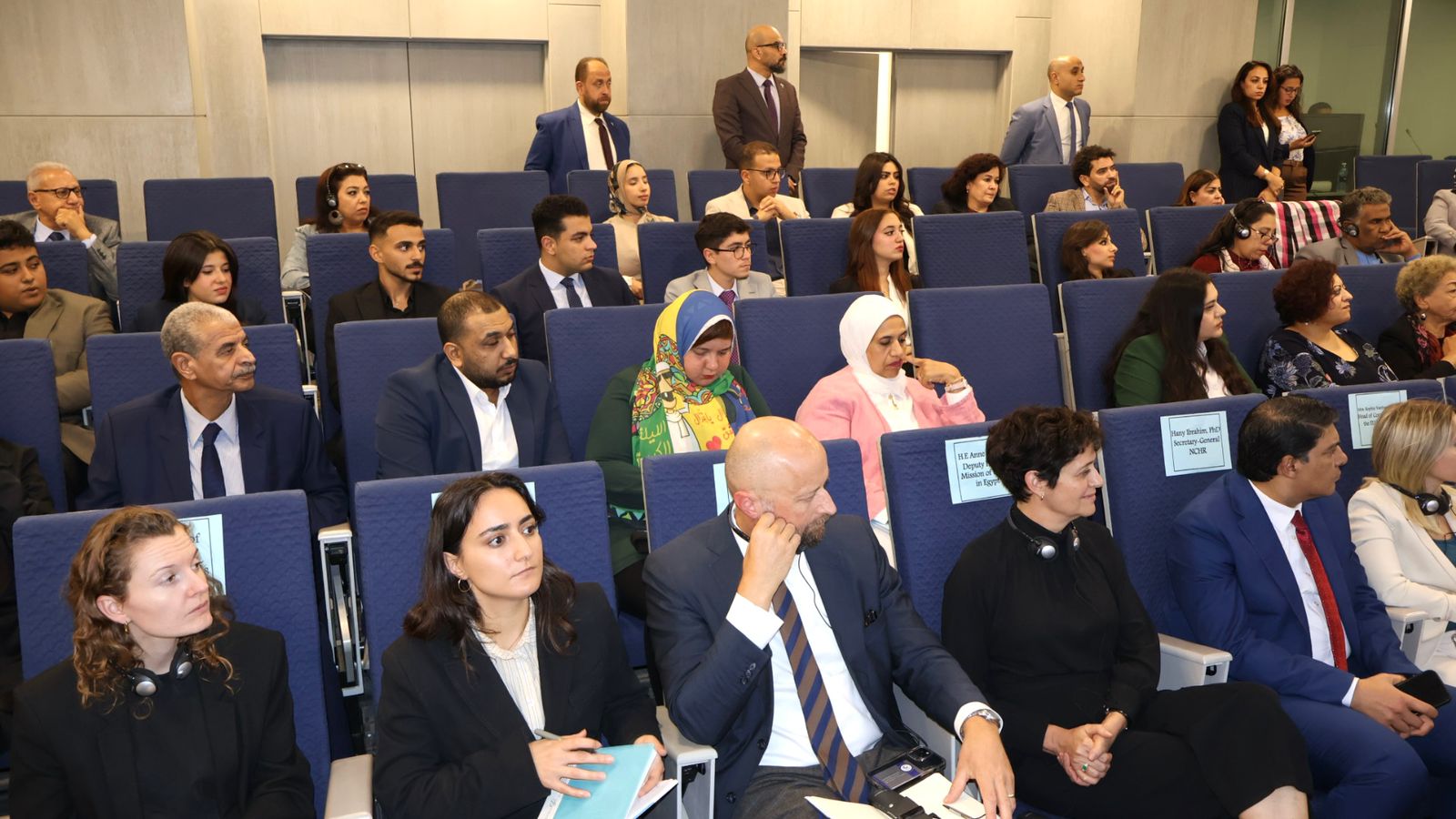 واستعرض كارم جهود المجلس في متابعة الانتخابات، وتطوير آليات تلقي الشكاوى، والتوسع في برامج التوعية والتدريب، بالإضافة إلى دوره في دعم الحوار مع الشباب والجامعات ومراكز الأبحاث، ومساندة المدافعين عن حقوق الإنسان.