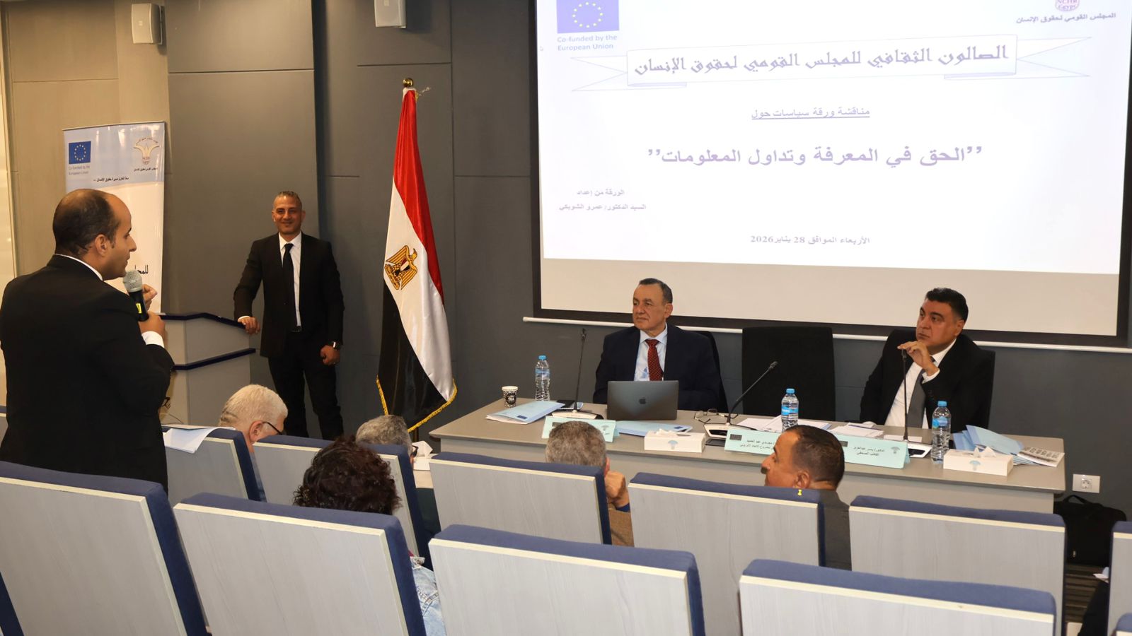 افتتح السفير الدكتور محمود كارم القائم بأعمال رئيس المجلس القومي لحقوق الإنسان الحلقة النقاشية التي نظمها المجلس بالتعاون مع مفوضية الاتحاد الأوروبي تحت عنوان "الحق في المعرفة وتداول المعلومات"، مؤكدًا أن هذا الحق يمثل الحارس الأساسي لحرية الصحافة والتعبير.