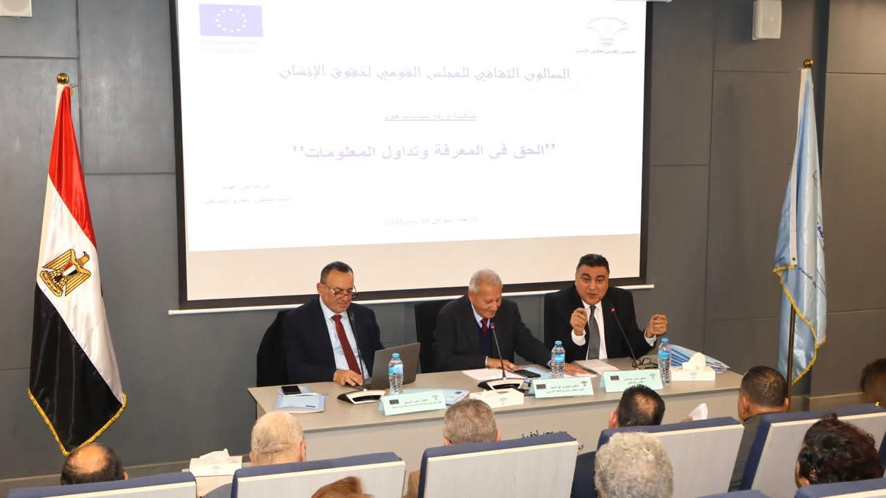 افتتح السفير الدكتور محمود كارم القائم بأعمال رئيس المجلس القومي لحقوق الإنسان الحلقة النقاشية التي نظمها المجلس بالتعاون مع مفوضية الاتحاد الأوروبي تحت عنوان "الحق في المعرفة وتداول المعلومات"، مؤكدًا أن هذا الحق يمثل الحارس الأساسي لحرية الصحافة والتعبير.