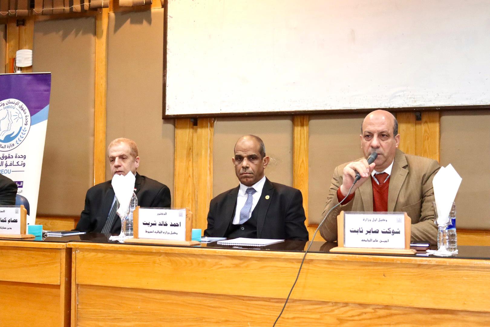 وتلاها زيارة إلى مركز الطلاب ذوي القدرات والاحتياجات الخاصة تم خلالها الالتقاء مع ا.د أحمد عبد المولى، نائب رئيس الجامعة لشئون التعليم والطلاب رئيس مجلس إدارة المركز، ا. د أمنية محمد مدير المركز وإجراء جولة فى المركز للتعرف على الخدمات التى يقدمها المركز وبحث سبل الدعم خلال الزيارة، وكذلك تم عقد ورشة عمل توعوية بمشاركة 120 من القيادات والعاملين بوزارة المالية، من بمحافظات (المنيا، اسيوط، الوادي الجديد، سوهاج)، حول الاستراتيجية الوطنية لحقوق الإنسان، وعقد ورشة عمل بمعهد تكنولوجيا المعلومات بمشاركة 100 شاب وفتاة بهدف توعيتهم بمبادئ ومفاهيم حقوق الإنسان مع التركيز على حق في التعليم والحق فى العمل، وتأهيلهم لسوق العمل الحر.